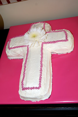 Here's my attempt at making/decorating Brooklyn's cake.  Not too bad, but definitely not professional.  (That was actually cake #2... I baked cake #1 Friday night and right after I took it out of the oven, I dropped it on the floor!)